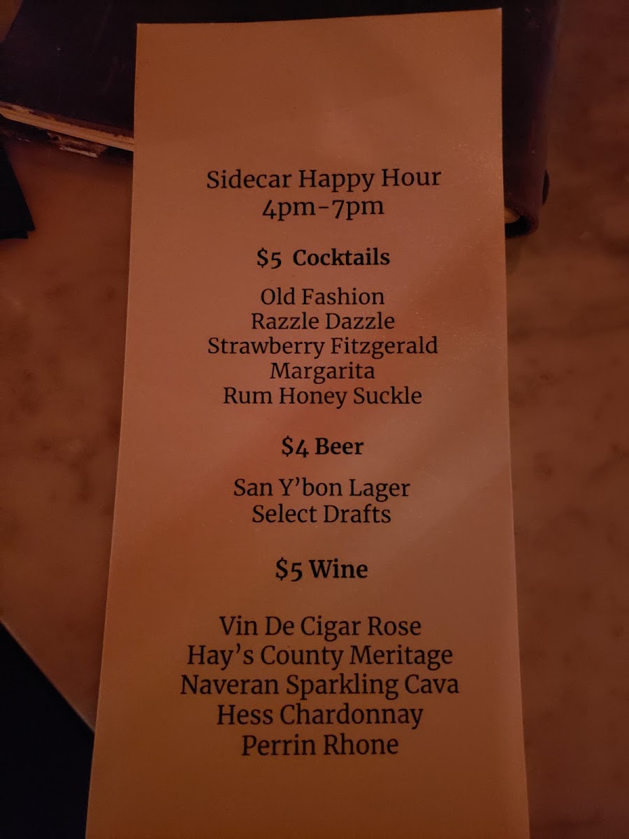 Welcome to Sidecar, a hidden gem nestled in the basement of 295 E San Antonio St, New Braunfels, TX. This rustic speakeasy combines lively atmosphere with exceptional culinary offerings. As you step inside, you are greeted by the charming sounds of live jazz, creating a vibrant backdrop for your evening.